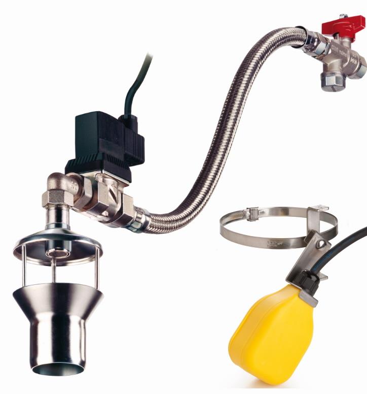 We therefore do not recommend to install a standard floating ball-cock at the header tank as this may cause irratic pump operation cycles. A solenoid-valve triggered by a float-switch inside the header tank or a similar solution is advisable.